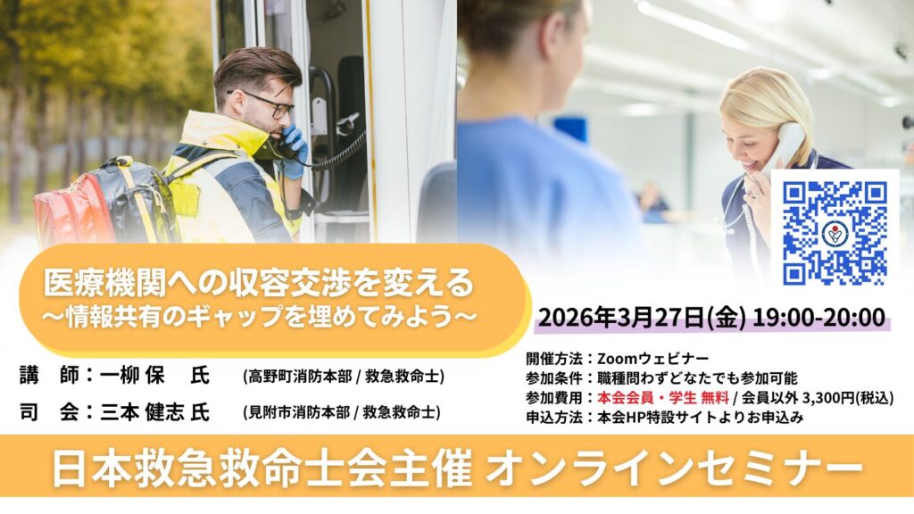 日本救急救命士会 教育・研修・多職種連携委員会では、2026年度から「教育研修設計セミナー(ベーシック・アドバンス)」を計画していますが、セミナーの形成的評価のために試行会を開催いたします。